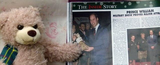 Baxterbear was TREEKLED to be featured in Hello! magazine with Prince William! He is the mascot for the British Military Tournament, formerly the Royal Tournament, and Prince William was the guest of honour on December 8th.