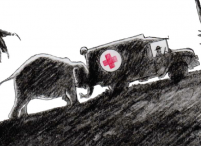 Positive thinking was all Baxterbear had to carry him through those days, and it was positive thinking that kept him smiling. When the ambulance became stuck, an Indian Elephant was used to push them out of the mud!