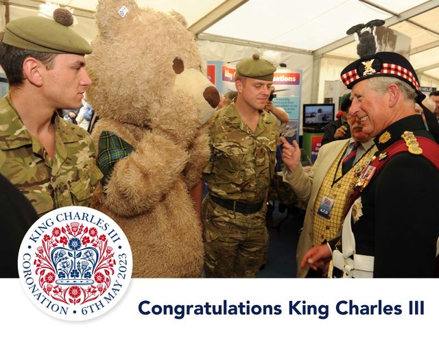 Baxterbear is honored and privileged to meet the Duke of Rothesay in Scotland otherwise known as His Royal Highness Prince Charles on Baxterbears return from Afghanistan where he was deployed for 6 months with the Padre of 2 SCOTS, also