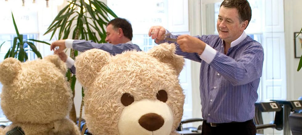 Baxterbear enjoys a hair-cut from Angus at Angus Gordon in Edinburgh