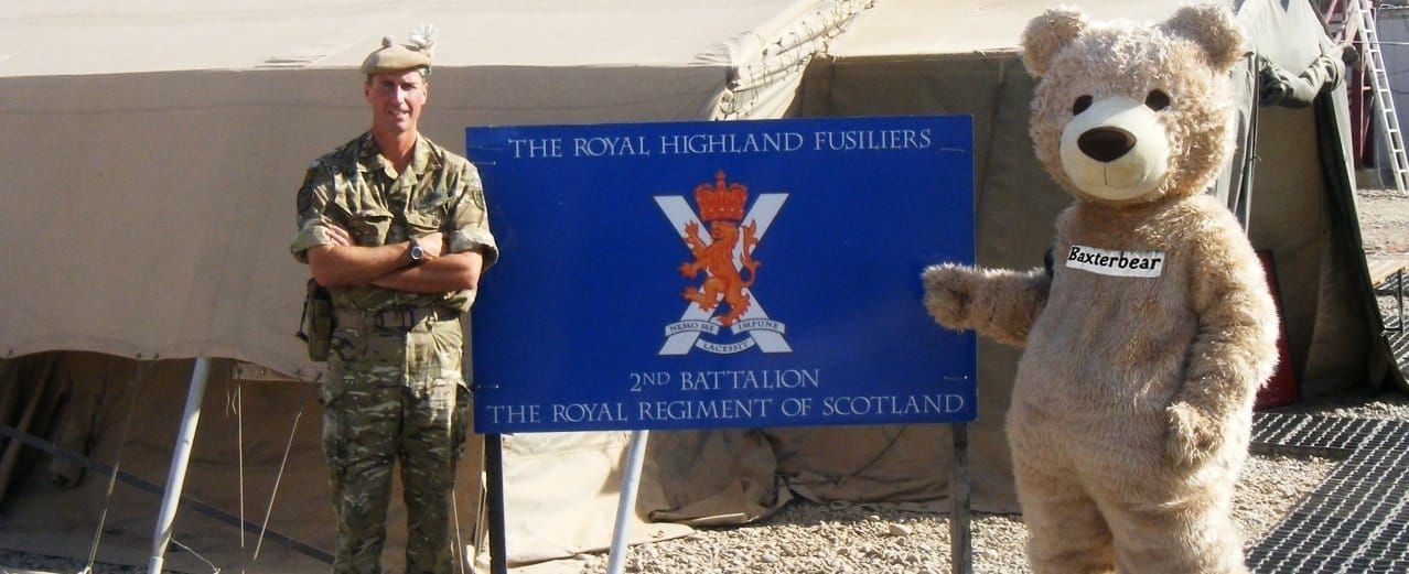 Baxterbear returned from his six month deployment with 2 SCOTS, Royal Fusiliers in Afghanistan, and he was TREEKLED to have made a difference with local Afghan children.