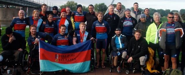 Nijmegan to Arnhem on Day 6 of our H4H charity bike ride. A very early start, like 0500 rise and 0600 on the bike and cycling through a cold and deserted Nijmegan. We crossed the famous bridge, captured by the US 82nd Airborne Division, in 1944 and as portrayed by Robert Redford in the film A Bridge Too Far. A very moving wreath laying ceremony with our US wounded veterans and our travelling Irish piper in his saffron kilt. Then on to Driel where the British Sappers have a memorial. They evacuated 2,500 members of 1st Airborne Division back across the Rhine when the operation was eventually called off by General Horrocks.