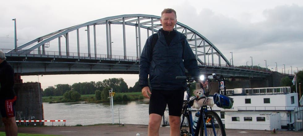 Baxterbear journeyed the whole way from London to Brussels on the handle bars of Colonel Simon Vandeleur Edinburgh Castle Garrison Commander.