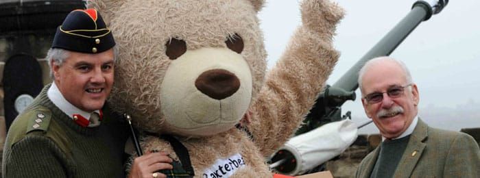 Happy retirement to Major Roy Robertson who – accompanied by Colonel Phil Bates – Commander Edinburgh Garrison, and Baxterbear.