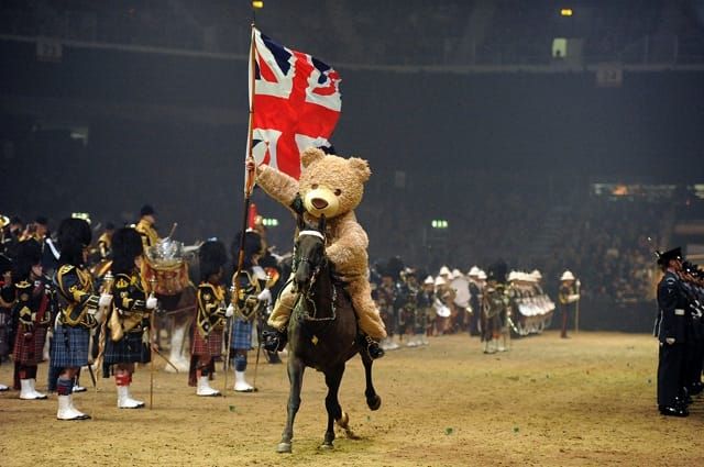 A spectular tournament, this year telling the story of the life of Her Majesty The Queen, there were too many horses to count, this year Baxterbear rode on one very special one, being a positive bear he hopes to ride on more again next year. The British Military Tournament supports three charities – Royal Navy & Royal Marines Charity, ABF The Soldiers’ Charity and Royal Air Force Benevolent Fund. Baxterbear was TREEKLED to be with The Coldstream Guards Band loving the Ceremonial and Pageantry.