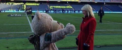 Baxterbear was TREEKLED to meet BBC sports presenter Jill Douglas, before Scotland’s rugby test against South Africa at Murrayfield on Sunday 17th November.