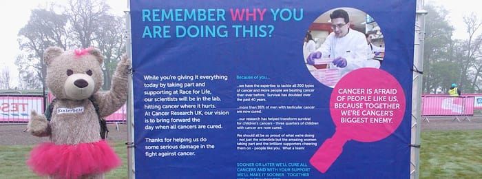 Did 5K Run for Cancer Research UK at Hopetoun House in Pink Tutu what I will do to make a difference I’m a TREEKLED Baxterbear. Check out my You Tube videos.