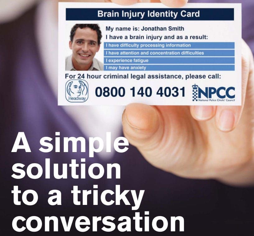 The card will help the police identify brain injury survivors and ensure they are given appropriate support when they come into contact with the criminal justice system.